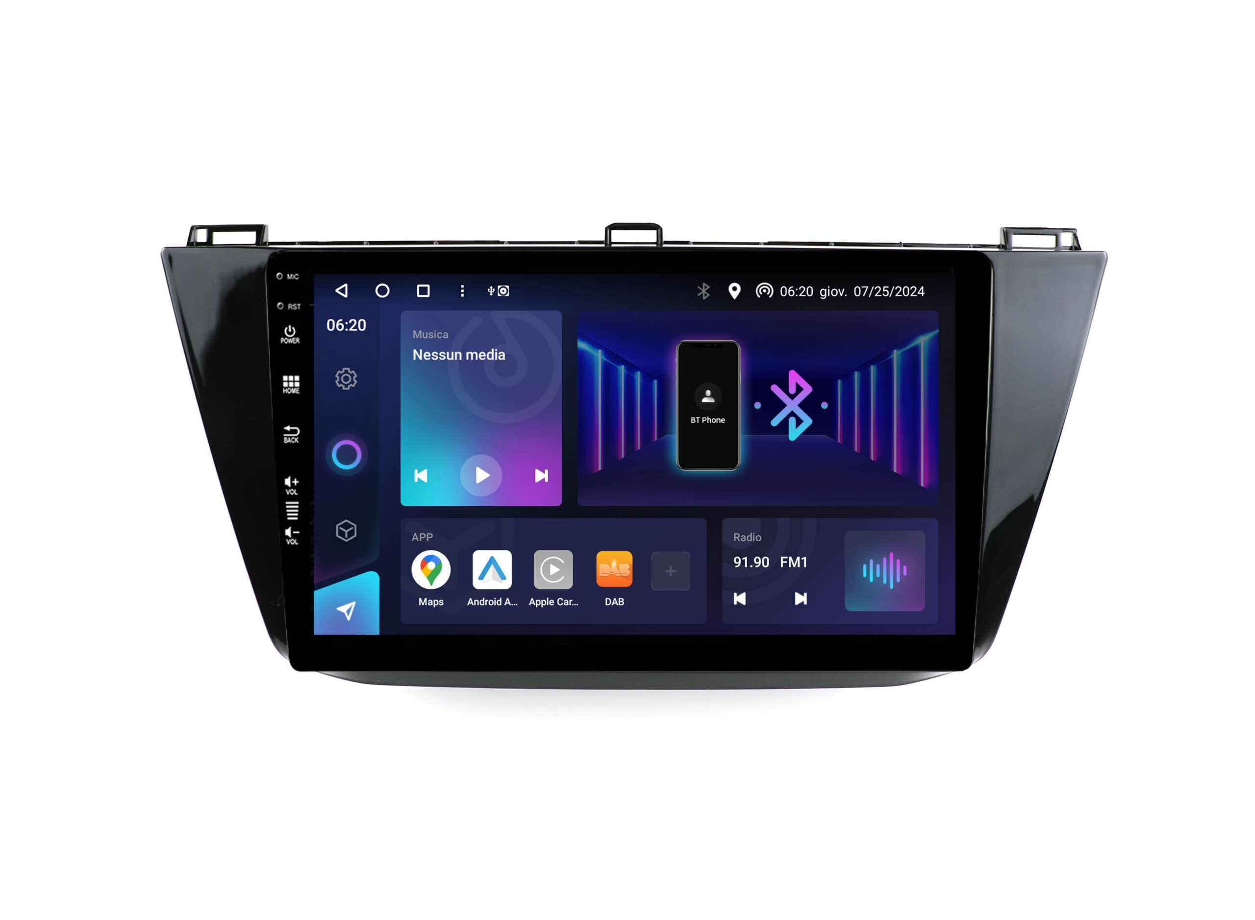 Hardware Top di Gamma con Android 13 Sotto lo schermo batte un cuore potente: un processore Octa-Core da 2.5 GHz affiancato da 4 GB di RAM. Questa configurazione permette al sistema operativo Android 13 di gestire il multitasking senza rallentamenti. Con i 64 GB di memoria interna, puoi scaricare direttamente dal Google Play Store le tue app preferite (YouTube, Spotify, Waze, Google Maps), trasformando la tua Tiguan in una vera smart-car connessa.