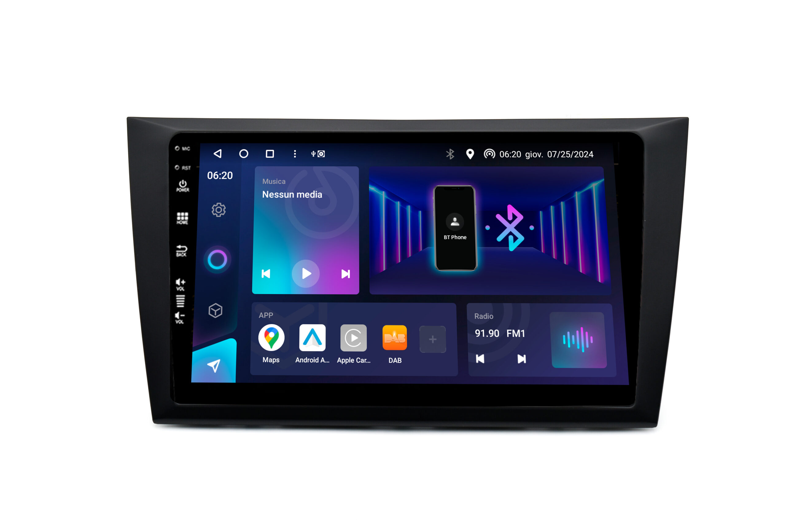 Display QLED da 9″: Visibilità Superiore Il monitor touch screen da 9 pollici sfrutta la tecnologia QLED con risoluzione 1280×720 pixel. Rispetto ai display LCD tradizionali, il QLED offre un contrasto infinito, neri profondi e una luminosità eccezionale, rendendo la consultazione di Google Maps o Waze estremamente facile anche sotto la luce diretta del sole.