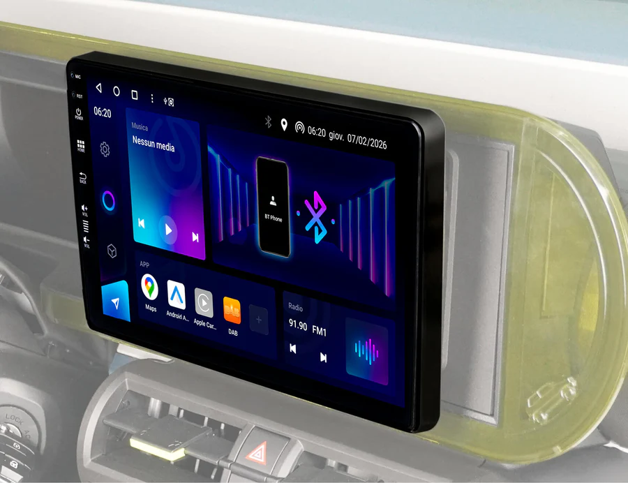Dimentica i cavi che ingombrano il tunnel centrale. Con la Phonocar SM385, l’integrazione con il tuo smartphone è totale e Wireless. Grazie alle licenze ufficiali Apple e Google, potrai visualizzare mappe, rispondere ai messaggi vocali e gestire le tue playlist su Spotify direttamente dallo schermo QLED o tramite i comandi vocali, garantendo sicurezza e comfort.